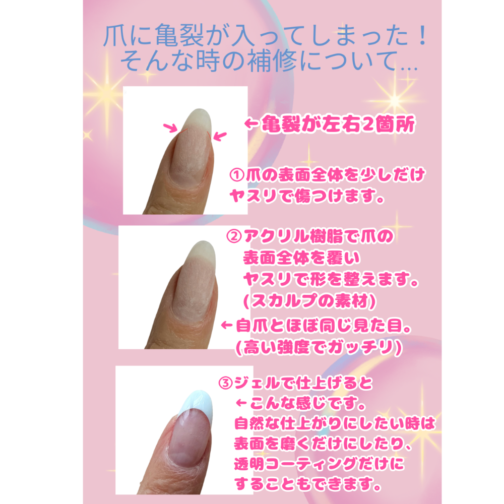 | ⭐️ジェル(爪を整え甘皮処理も込み) 一色塗り60分 グラデーション70分 フレンチ70分 オフ20分 ⭐️スカルプチュア(10本) クリア80分 グラデーション90分 フレンチ100分 オフ30分 ⭐️自爪派の方に向けたプラン↓ 甘皮ケア、整爪、爪磨きORマニキュア 60分 ※自爪の亀裂補修1本10分前後 ※爪まわりのガサガサの角質ケア10本20分〜 ※その他なんでもご相談ください。 (事前にデザインや色などある程度決めておくと時間短縮になります) |